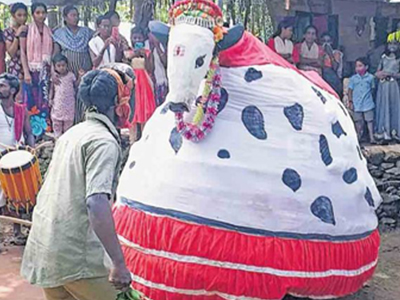 This is a ritual performed by the Mavilas as beggars who go into the houses of the landlords after the harvest festival. At that time the local chiefs and landlords went to Subramaniam Koval and brought plow oxen from there. The ritual originated from making the mango into a bull with musical accompaniment so that the plow bulls would not be blinded. It has become a ritual to receive alms and money by placing necklaces and ornaments on ten bulls. There should be about seven Maoists in the game in connection with this. The shape of the bull is made of cane and a special cloth. The bulls also dance along with the choir, and the bulls have a special style of singing that is in keeping with the dance steps of the bull. Most of the songs are in praise of the bosses.